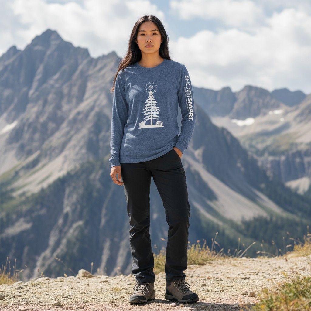 Celebrate the season in style with our Shoot Smart Christmas long-sleeve tee in heather blue! Comfortable, festive, and available in a variety of sizes at all locations.